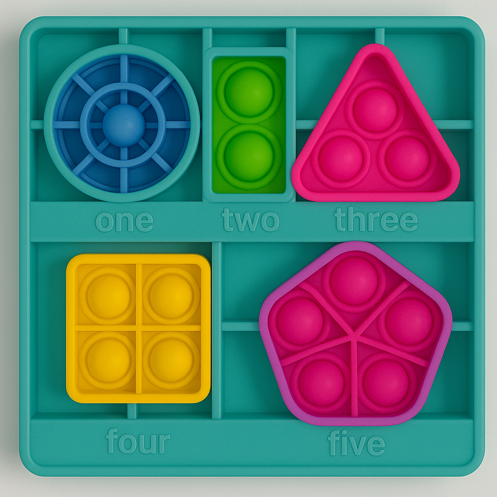 Descoperă combinația perfectă între învățare, relaxare și distracție cu acest pop-it educativ multicolor! Conceput special pentru copiii mici, acest joc senzorial ajută la recunoașterea formelor geometrice, învățarea numerelor în limba engleză și stimularea simțurilor tactile.